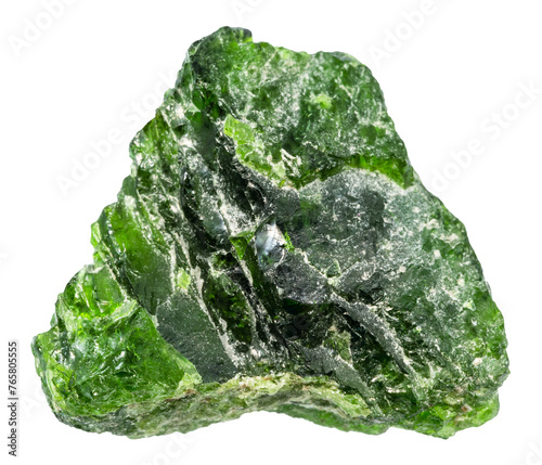 close up of sample of natural stone from geological collection - unpolished chromian diopside mineral isolated on white background from Yakutia