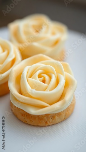 cookie, baked goods, dessert, frosting, pastry, rosette, design, intricate, swirled, delicate, soft focus, background, highlight, birthday cake, festive, sweet, tasty, indulgent, epicure, artisanal, homemade