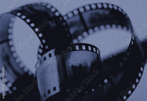 film, film reel, cinema, cinematic, projector, disrobed, grain, grainy, blue, monochrome, vintage, retro, motion picture, motion picture, celluloid, photo, imagery, storytelling, production, camera, lens, light, lighting, atmosphere, texture, classic, timeless, analog, theatre, negative, filmstrip, frame, projection, nostalgia