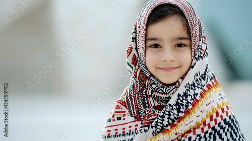 student, school, uniform, cultural, pattern, portrait, smile, headscarf, clothing, textile, fashion, education, female, young, arabic, middle eastern, ethnic, diversity, tradition, lifestyle, headwear, design, colourful, geometric, youth, cheerful, expression, confidence, learning, indoor, background, natural, fresh, vibrant, culture, identity, modern, social, educational