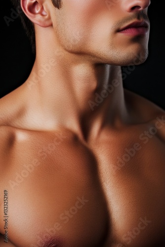Close Up Portrait of a Handsome Male Chest Against a Dark Black Background