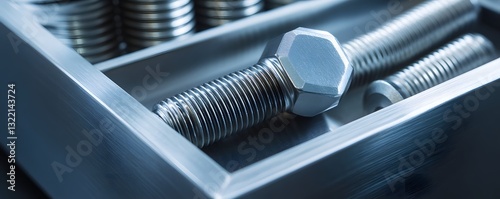 bolt, metal, hardware, fastener, screw, steel, thread, industrial, mechanical, engineering, construction, manufacturing, chrome, metallic, hexagon, silver, shiny, industry, precision, machine, equipment, technology, part, tool, strength, material, design, closeup, sharpened, object, nobody, macro, detail, surface, stack, arrangement, group, container, box, organised, orderly, clean, workshop, factory, structure, component, system, element