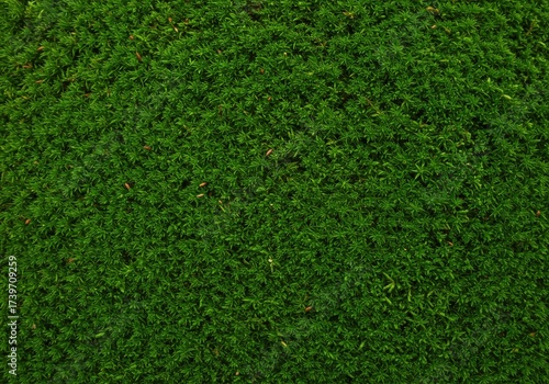 Close up top view of lush green moss texture background for natural eco friendly product design