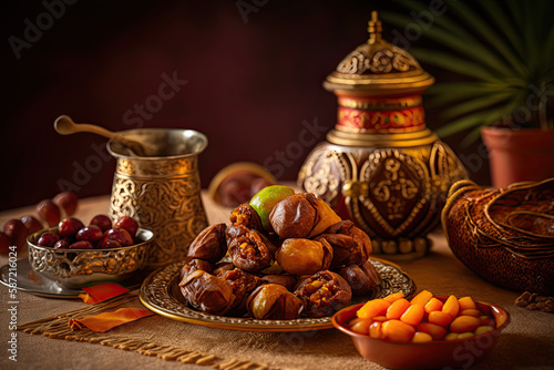 artificial intelligence, food, ramadan, table, meal, festive, dinner, drink, dining, arab, eat, family, muslim, lantern, celebration, eatery, catering, light, chicken, asian, islamic, plate, vegetable, arabic, lunch, dish, islam, culture, traditional, muslim, samosa, view, fasting, tasty, greeting, top