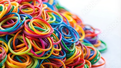 Closeup colorful rubber band, rubber band, colorful, office supplies, elastic, stretchy, vibrant, close-up