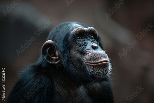 chimpanzee, closeup, portrait, face, thought, deep, beautiful, dreaming, thoughtful, detailed, image, view, perspective, primate, animal, wildlife, nature, photo, head, eye, expression, fur, mammal, ape, jungle, forest, intimate, natural, environment, closeup, zoom, texture, emotion, detail, zoo, black, wild, sitting, baby, bonobo, endangered, old, thinking, looking, creature, funny, look, mouth