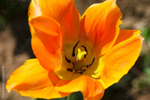 Close-up of a beautiful orange tulip details outside in nature