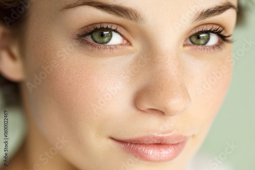 beauty, woman, face, portrait, young, skin, green eye, make-up, eyeshadow, lip, smile, freshness, femininity, glamour, elegance, health, facial features, natural, attractive, sunny, casual attire, lifestyle, happiness, female, resting, closeup, serenity, people, softness, charme, wellness, natural beauty, facial expression