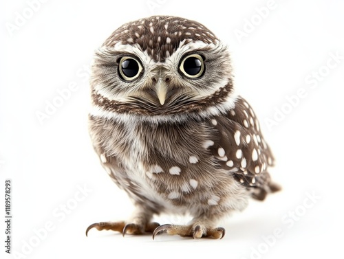 owl, bird, animal, wildlife, cute, brown, white, eye, feather, small, avian, nature, closeup, isolated, background, beak, talon, spot, pattern, little, looking, portrait, studio, staring, standing, wild, baby