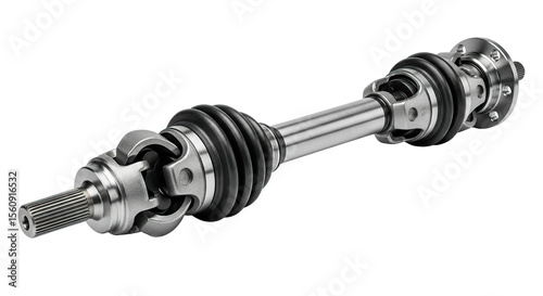 Close-up of a car drive shaft, showcasing its metallic, mechanical components, isolated.