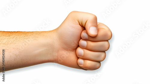 hand, fist, clenched, arm, gesture, human, body, part, power, strength, determination, fight, conflict, action, closeup, detail, isolated, white background, skin, light, shadow, texture, pale, tan, freckle, male, man, masculine, energy, force, effort, resolve, tension, anger, defiance, resistance, rebellion, protest, control, dominance, victory, triumph, success, achievement, goal, ambition, sharpened