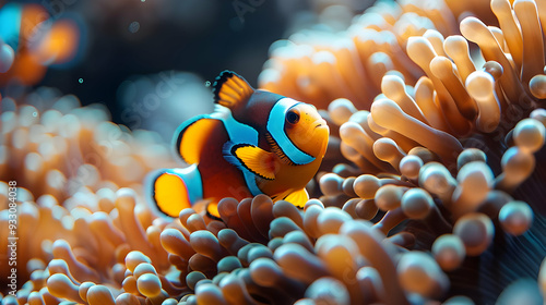 Closeup of a Clownfish Hiding in an Anemone - Realistic Photo