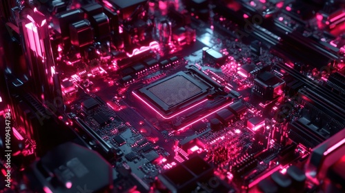 technology, computer, motherboard, central processing unit, circuit, electronic, hardware, digital, innovation, futuristic, neon, pink, lighting, glow, component, system, processing, datum, network, connection, electric, power, energy, chips, microchip, integrated, wiring, board, pcb, processor, desktop, laptop, server, machine, future, science, abstract, background, design, pattern, texture, detail
