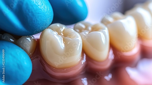 teeth, teeth, dental, crown, dentistry, restoration, health care, medicine, implant, model, gum, porcelain, ceramic, filling, molar, premolar, incisor, canino, enamel, root, jaw, oral, hygiene, health, care, treatment, procedure, surgery, check-up, exam, clean, bright, shine, white, pink, closeup, macro, gloved, hand, doctor, dentist, professional, technology, science, medicals, image, photo, picture