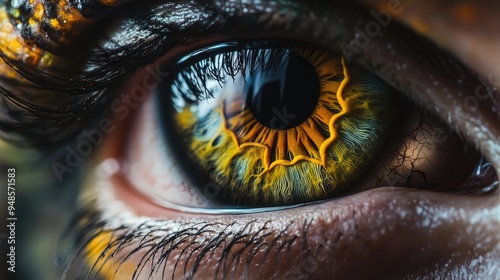 eye, human, iris, pupil, eyelash, closeup, macro, detail, texture, pattern, yellow, orange, green, blue, black, brown, light, dark, skin, anatomy, biology, vision, sight, gaze, sharpened, sharp, blurry, vibrant, colourful, natural, beauty, wonder, mystery, abstract, art, photo, science, nature