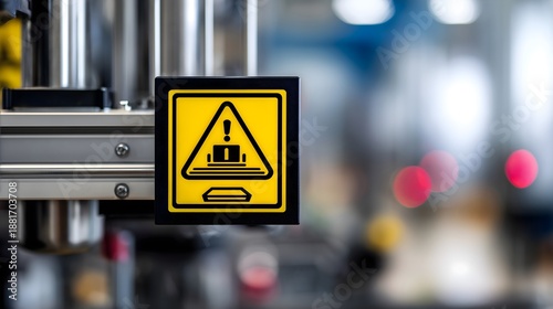 closeup, blurred background, factory, manufacturing, assembly line, warning sign, industrial design