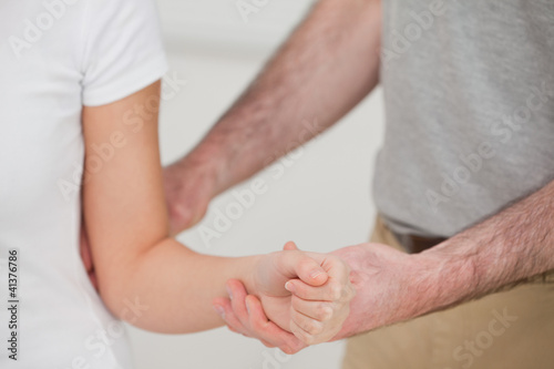 1, person, part of, man, woman, closeup, indoor, painful, injury, hand, elbow, arm, wrist, health, care, healer, medicine, medicals, patient, recovery, exercising, physical therapy, physical therapist, practitioner, osteopath, chiropractor, treatment, doctor