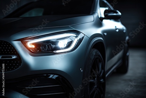 suv, car, vehicle, headlamp, front, closeup, modern, dark, grey, sleek, illuminated, detail, automotive, luxury, design, technology, light, night, interior, exterior, metal, gloss, stylish, powerful, compact, sport, urban, high technology, avant-garde, sophisticated, refined, detailing, illumination, light, focused, dynamic, profile, modernity, contemporary, automobile, high-end, premium, headlamp