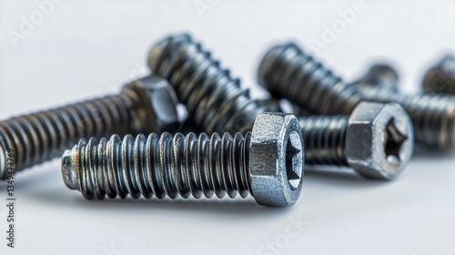 screw, metallic, hardware, fastener, closeup, steel, silver, shiny, industrial, tool, construction, equipment, macro, detailed, isolated, background, white, arrangement, precision, symmetry, organised, neat, small, component, bricolage, engineering, fixing, mechanical, object