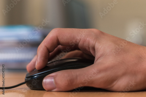 closeup of a person's hand using a computer mouse
