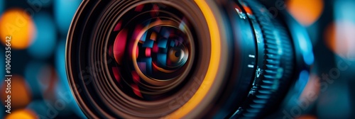 close-up of a professional camera lens against a dark background, perfect for a lens-themed wallpaper