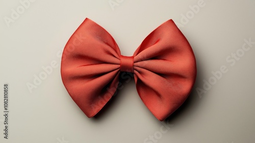 Close-up of a red satin bow tie against a neutral background, featuring a symmetrical design and smooth texture.