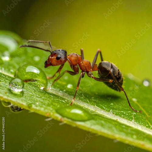 ant, insect, invertebrate, leaf, dew, water, droplet, macro, close, closeup, nature, wildlife, environment, red, brown, black, green, detail, detail, walking, moving, forest, garden, animal, insect, fauna, crawling, organism, natural, fresh, wet, small, biology, photo