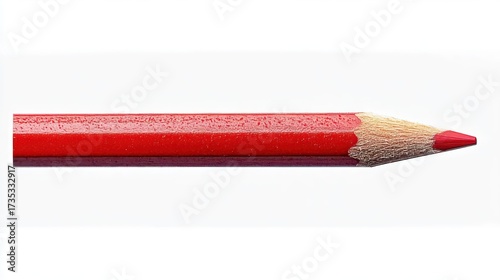 Close-up of a sharpened red colored pencil lying horizontally on a white background