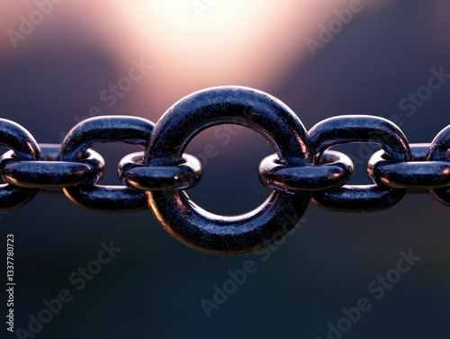 Close-up of a shiny metal chain link showcasing strength and connection.