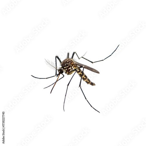 Close-up of a single mosquito insect a dangerous pest isolated on a transparent or white background. PNG
