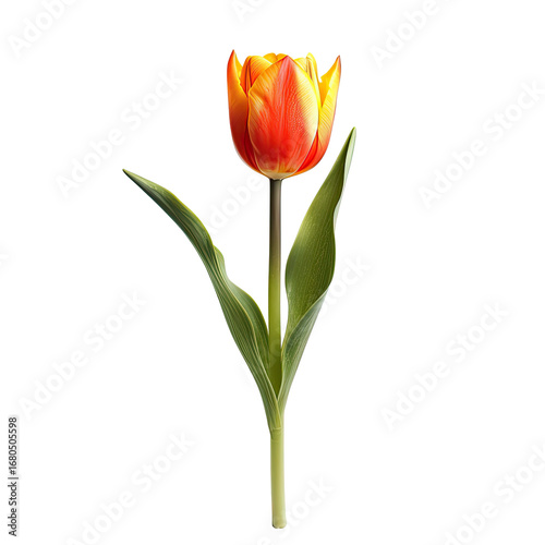 tulip, flower, bloom, orange, red, yellow, green, stem, leaf, vibrant, isolated, single, nature, spring, summer, garden, botanical, floral, colours, detail, closeup, plant, beauty, artistic, graphic, illustration, digital, image, art, design, vertical, symmetry, high-coloured, bright, contrast, texture, rendering, realistic, modern, decorative, springtime, blossom