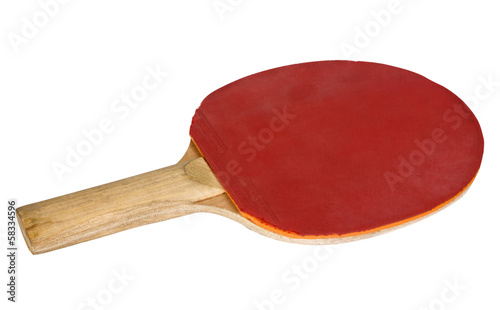 racket, red, wood, clipping path, competitive sport, cut-out, equipment, handle, simplicity, single object, still life, ping pong, white background, closeup, color image, horizontal, no people, photo, studio shot, shape, sport