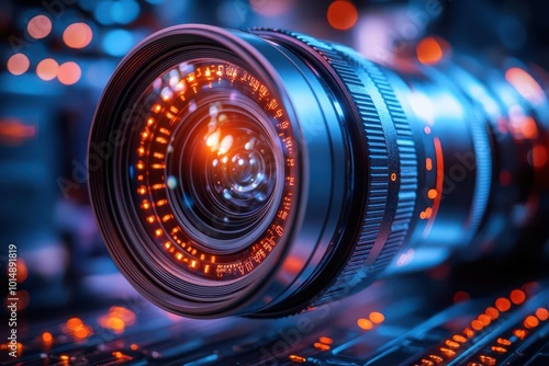 closeup of a video camera lens showcasing intricate details and craftsmanship embodying the essence of filmmaking and visual storytelling in a modern design