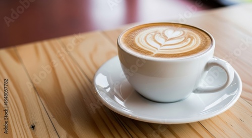 hot drink, cup, latte, art, cappuccino, drink, beverage, hot, warm, morning, aroma, cafes, eatery, table, wood, wooden, brown, foam, froth, crema, espresso, caffeine, energy, refreshment, break, mug, saucer, food, lifestyle, relaxation