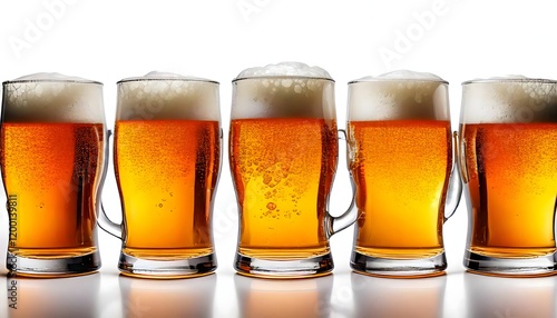 Close-up of beer mugs showcasing frothy tops and sparkling golden tones