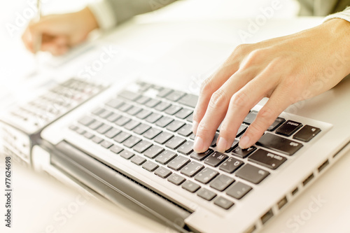 Closeup of businessman hands typing on laptop computer
