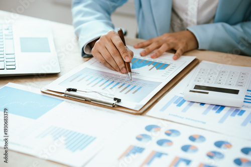 businesswoman, chart, graph, clipboard, calculating machine, laptop, accounting, finance, budgeting, report, statistic, planning, strategy, corporate, office, management, investment, income, profit, growth, revenue, balance sheet, inspecting, documentation, paperwork, analyst, performance, business report, portfolio, tax, expense, productivity, professional, workplace, company, administration, forecasting, desk, number, entrepreneurship