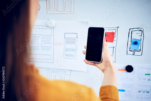 closeup, holding, smartphone, whiteboard, office, business, information technology, board, blank, expertise, wireless, startup, developer, inspiration, web, connection, online, modern, cyberspace