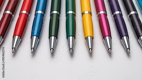 Close-Up of Colorful Ballpoint Pens in a Row Photo