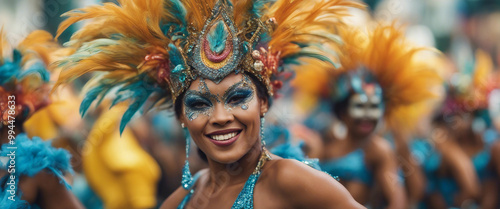 carnival, dancer, feather, costume, rio, brazil, samba, parade, celebration, cultural, vibrant, colourful, headdress, glistering, performance, beauty, smiling, happiness, festive, traditional, event, culture, latin, american, south, ethnicity, joy, excitement, entertainment, show, rythm, spangled, ornamentation, plumage, design, artistry, style, fashion, make-up, expressive, portrait, closeup, detail, night, illuminated, background, crowd, gathering, community