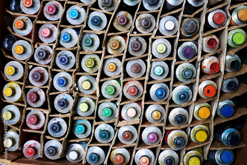 oil painting, tube, closeup, imperfection, color image, horizontal, photo, dirty, oilpaint, vibrant color, many-coloured, choice, still life, indoor, ukraine, selective focus, variation, no people, artwork, dye, painting, colourful, art