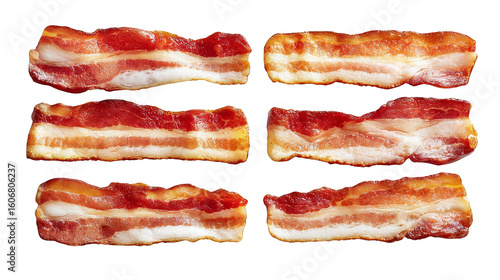 Closeup of crispy bacon strips on a black background, culinary masterpiece sizzling.