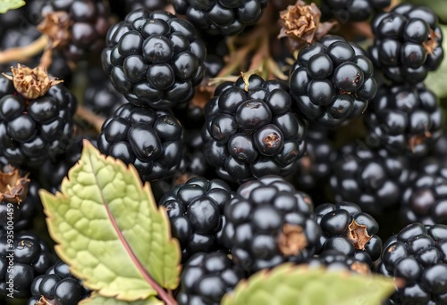 Closeup of dark blackberries or blackberry-like fruits, with a textured