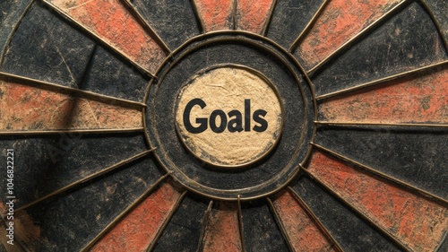 Close-up of dartboard's bullseye area with "Goals" written in center