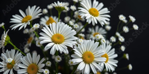 Close-up of delicate daisies and gypsophila bouquet against dark backdrop, wildflowers, illustration