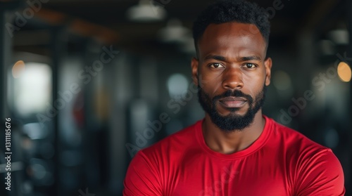 man, trainer, gym, closeup, closeup, african american, red, shirt, serious, discipline, fitness, machine, exercise, health, sport, face, determined, indoor, training, wellness, athletic, sharpened, blurred, background, active, lifestyle, strength, coach, power, motivation, physical, healthy, body, confidence, effort, intensity, dedication, strong, person, people, black, guy, looking, boy, man, 1, smile, african american, head