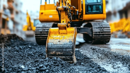 shoveling, construction, machinery, heavy, equipment, road, building, shoveling, bucket, yellow, industry, engineering, site, work, project, ground, dirtied, trench, asphalt, pavement, material, vehicle, powerful, tool, industrial, machine, development, urban, infrastructure, technology, progress, modern, demolition, repair, maintenance, operation, process, detail, closeup, sharpened
