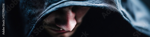 Close-up of Face Partially Hidden by Dark Hooded Garment
