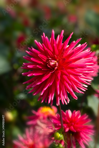 Closeup of flower sof Dahlia 'Josudi Hercules' in a garden in summer