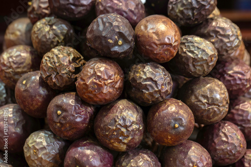 Closeup of fresh ripe Passion Fruits on a market stall